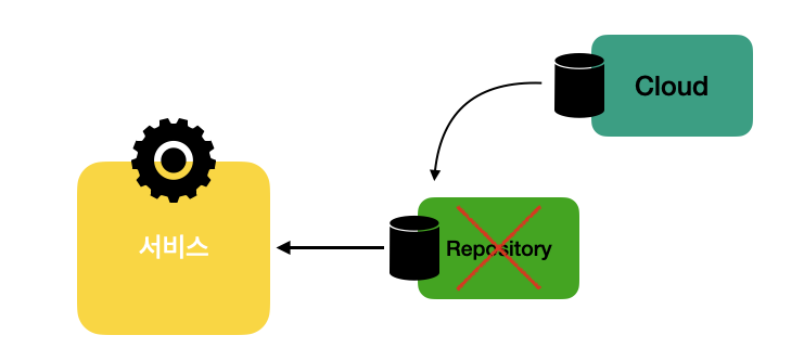 만약 Repository클래스가 아니라 Repository클래스를 상속받은 CloudRepository클래스를 이용해야한다면 다음과 같이 한 문장의 소스코드만 변경하면 된다.
