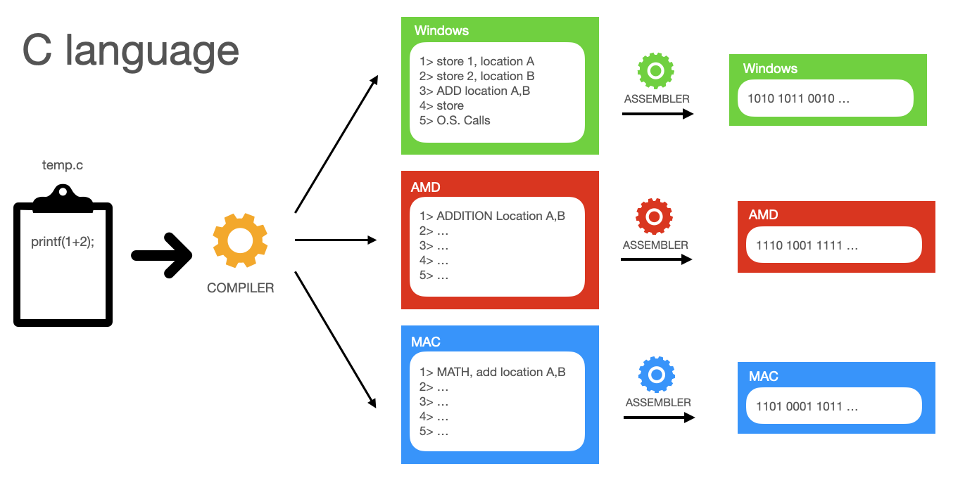 이전에 전통적인 언어의 컴파일과 프로그램 실행과정에 대해 알아보았다. 기존의 문제는 사용자의 프로그램 실행 환경에 맞춰서 다양한 버젼의 프로그램 개발이 필요로 했다는 점이다. 또한, Windows에서 컴파일하여 생성한 실행파일은 오직 Windows머신에서만 실행이 가능하다.