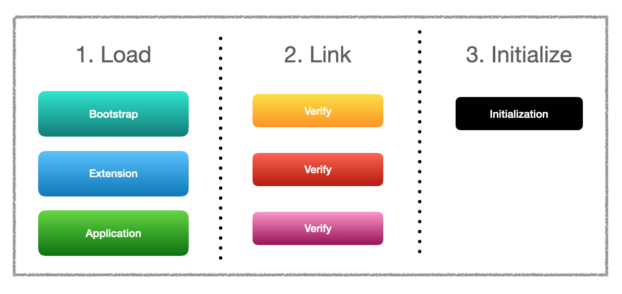 JVM의 구성요소 중 ClassLoader는 3가지의 타입이 존재하며, 3단계로 역할을 수행한다.