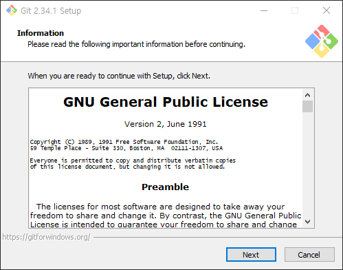 git version 명령을 통해 다음과 같이 버전확인이 된다면 정상적으로 설치된 것입니다.